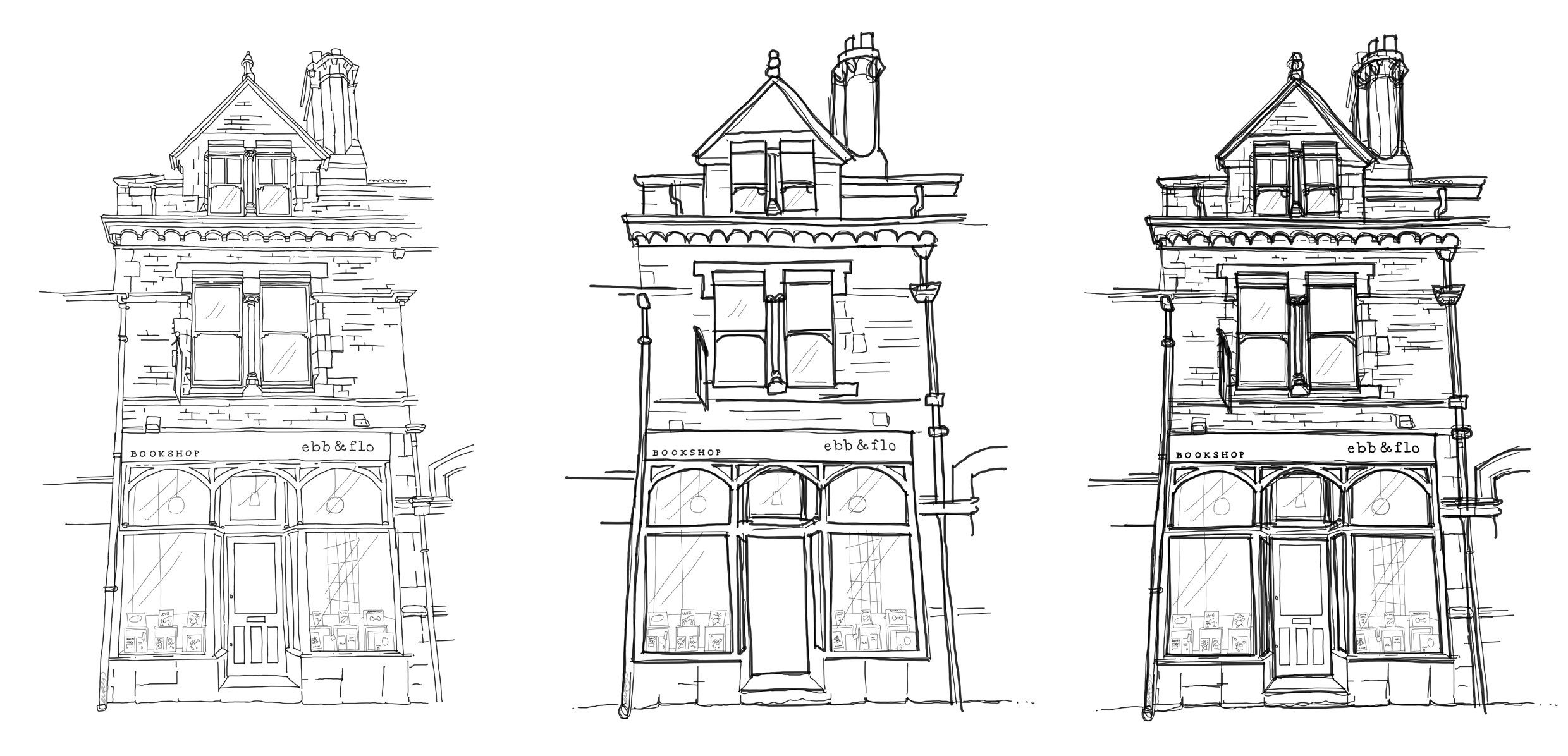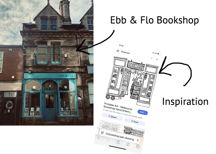 The owner Dianne, wanted a pencil drawing of the new shop front so she could use it for social media and create bookmarks. She gave me her inspiration, and away I went to create some examples.